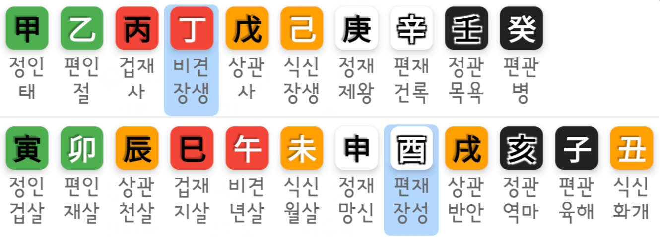 - 재성(財星): 타고난 재물 복과 배우자/부친 관계