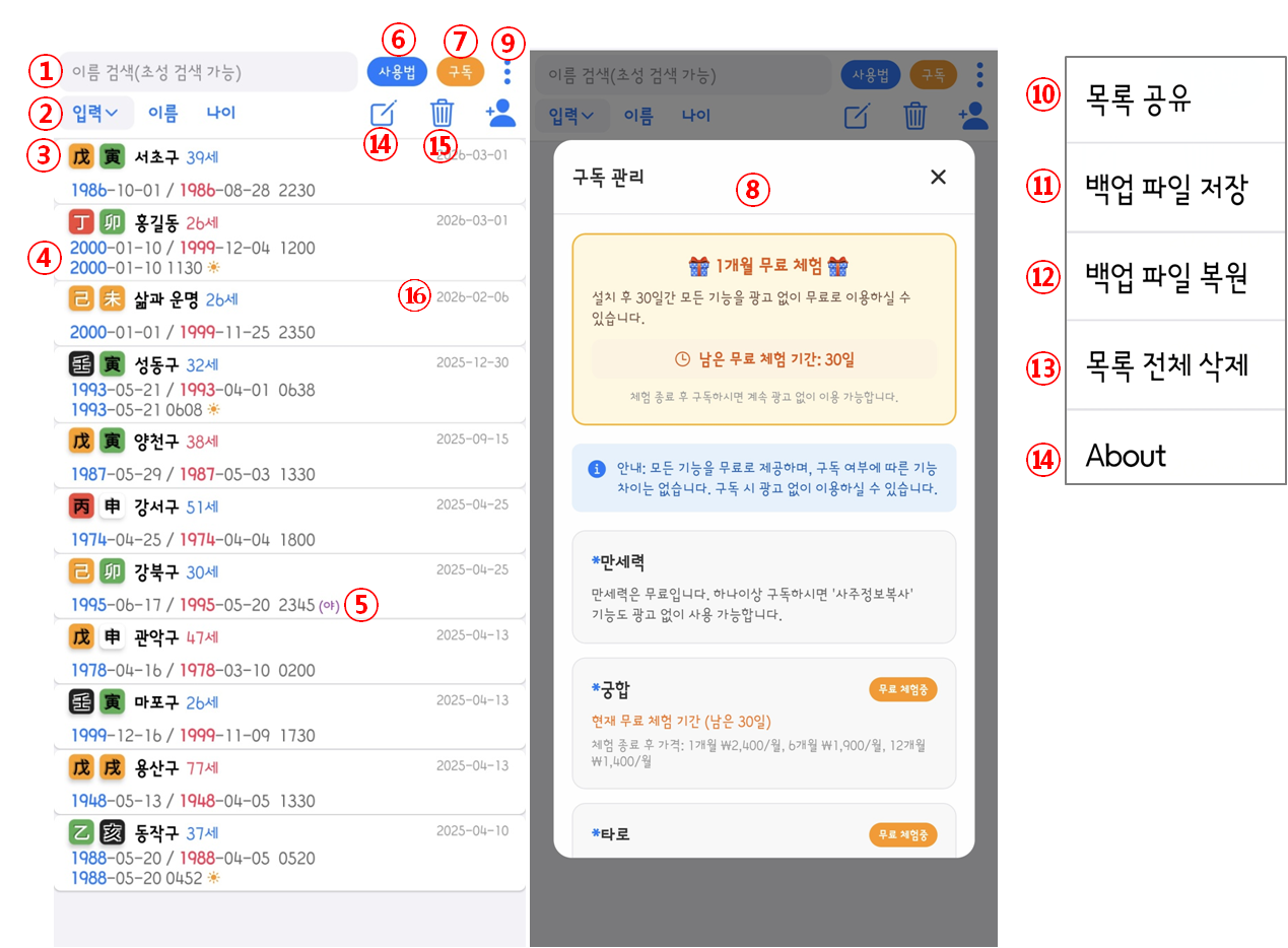 만세력은 무료체험 기간이 지나도 계속 무료 입니다.